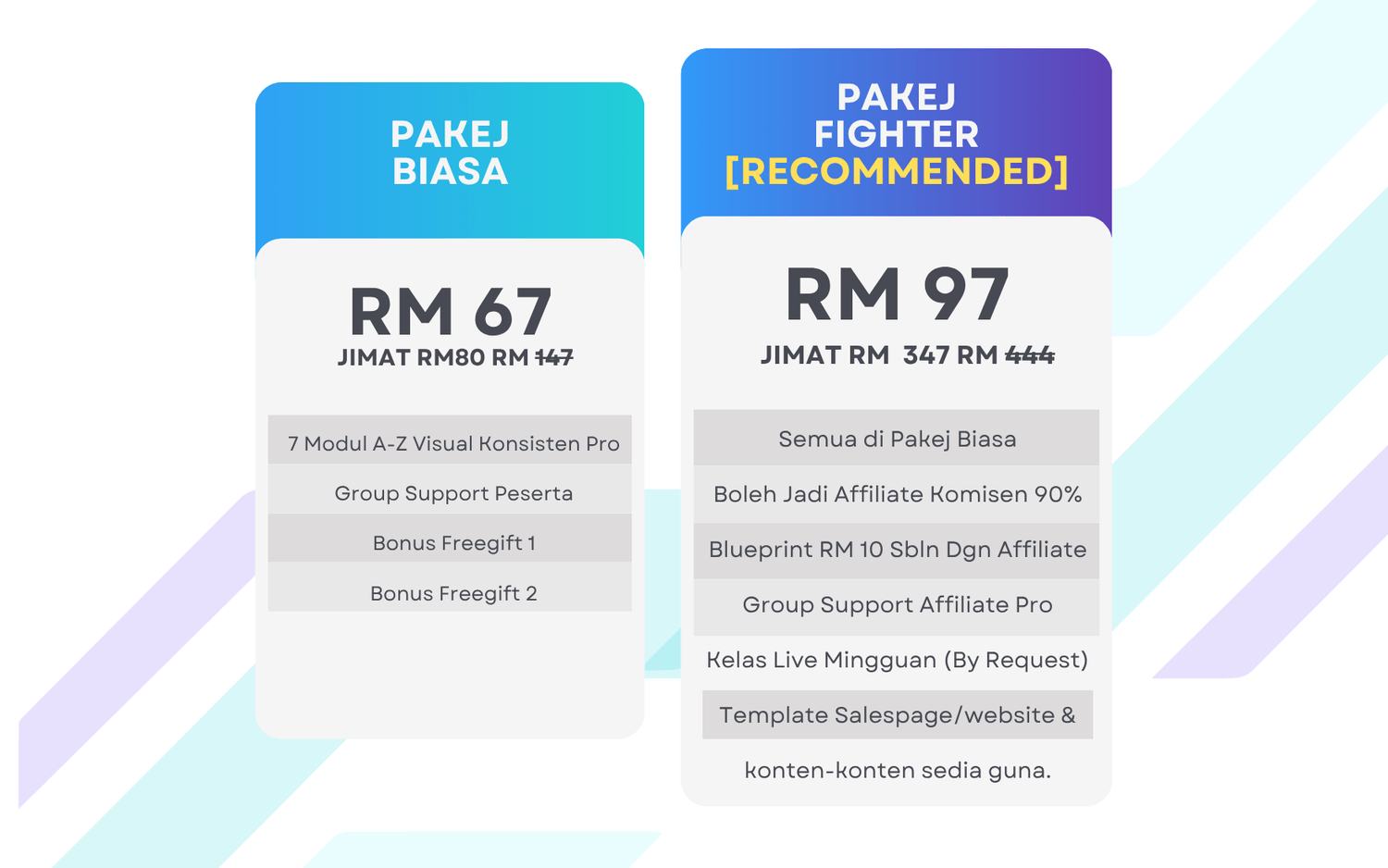 - Anda dapat promote Produk Panduan Visual Konsisten Pro ni sebagai Affiliate dan Komisen 90% dari harga jualan.
